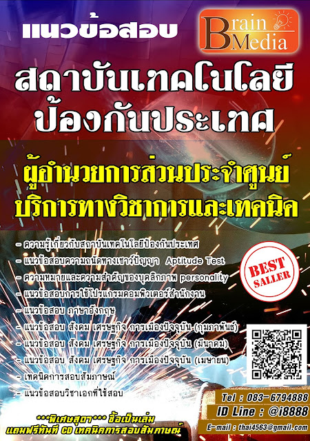 โหลดแนวข้อสอบ ผู้อำนวยการส่วนประจำศูนย์บริการทางวิชาการและเทคนิค สถาบันเทคโนโลยีป้องกันประเทศ