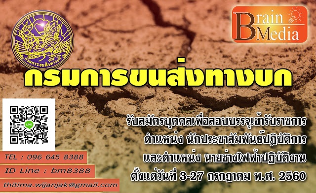 กรมการขนส่งทางบก รับสมัครบุคคลเพื่อสอบบรรจุเข้ารับราชการ ตำแหน่ง นักประชาสัมพันธ์ปฏิบัติการและตำแหน่ง นายช่างไฟฟ้าปฏิบัติงาน ตั้งแต่วันที่ 3-27 กรกฎาคม พ.ศ. 2560ตำแหน่ง นักประชาสัมพันธ์ปฏิบัติการเงินเดือน 15000 บาท