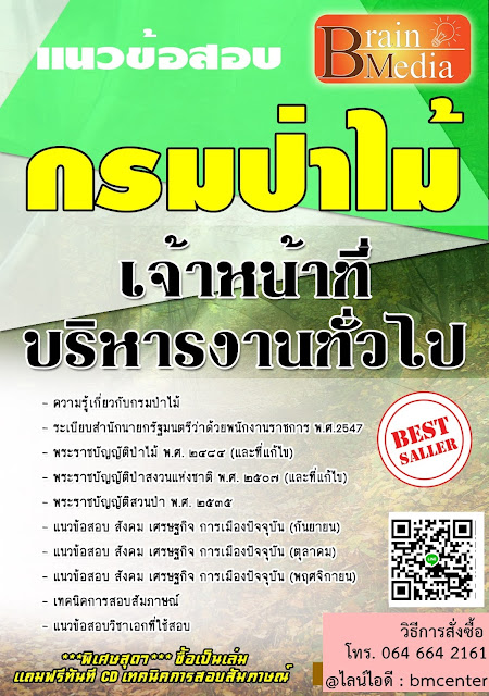 แนวข้อสอบ เจ้าหน้าที่บริหารงานทั่วไปโหลดแนวข้อสอบ เจ้าหน้าที่บริหารงานทั่วไป กรมป่าไม้แนวข้อสอบ เจ้าหน้าที่บริหารงานทั่วไป กรมป่าไม้ - ความรู้เกี่ยวกับกรมป่าไม้- ระเบียบสำนักนายกรัฐมนตรีว่าด้วยพนักงานราชการ พ.ศ.2547- พระราชบัญญัติป่าไม้ พ.ศ. ๒๔๘๔ (และที่แก้ไข)- พระราชบัญญัติป่าสงวนแห่งชาติ พ.ศ. ๒๕๐๗ (และที่แก้ไข)- พระราชบัญญัติสวนป่า พ.ศ. ๒๕๓๕- แนวข้อสอบระเบียบงานสารบรรณ พ.ศ.2526 และที่แก้ไขเพิ่มเติม- ความรู้เรื่องการบริหารสำนักงานสมัยใหม่- แนวข้อสอบนักจัดการงานทั่วไป- ความรู้ด้านการติดต่อประสานงาน- ความรู้ด้านงานเลขานุการ- การเขียนและการประเมินโครงการ- แนวข้อสอบคอมพิวเตอร์- แนวข้อสอบ สังคม เศรษฐกิจ การเมืองปัจจุบัน (กันยายน)- แนวข้อสอบ สังคม เศรษฐกิจ การเมืองปัจจุบัน (ตุลาคม)- แนวข้อสอบ สังคม เศรษฐกิจ การเมืองปัจจุบัน (พฤศจิกายน)- เทคนิคการสอบสัมภาษณ์ สนใจสั่งซื้อหนังสือแนวข้อสอบโทร. 064 664 2161@ไลน์ไอดี :bmcenterกดแอ๊ดด้วยมือถือ :http://line.me/ti/p/jrAgo5UN-j[/b]