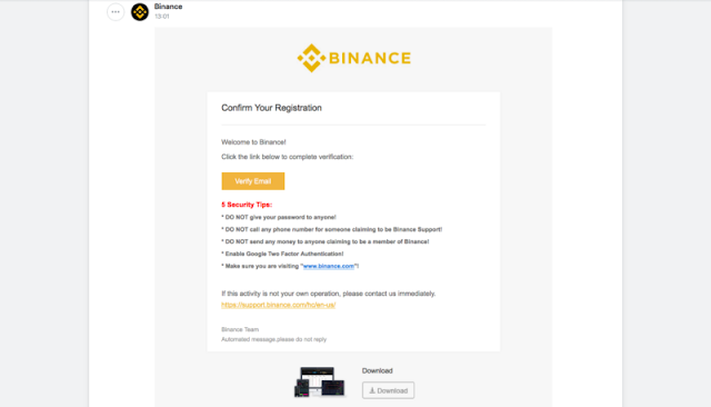 6. เข้าไปวิเคราะห์อีเมลของพวกเราที่ถูกส่งมาจาก Binance คลิกที่ปุ่ม Verify Emailเพื่อยืนยันการสมัคร